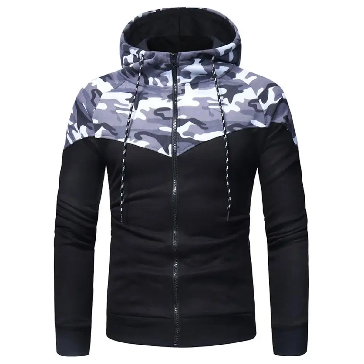 • Color-Block Pattern: Features a striking contrast between solid black lower panels and a grey/white camouflage print on the upper chest, shoulders, and legs.