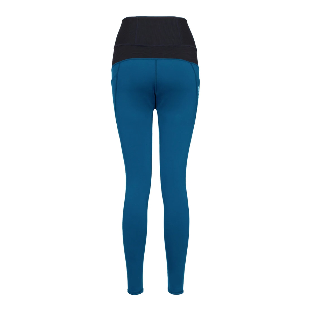 These teal and black high-waisted leggings are a high-performance athletic staple, frequently used for gym training, yoga, and rowing.