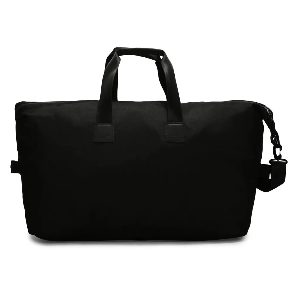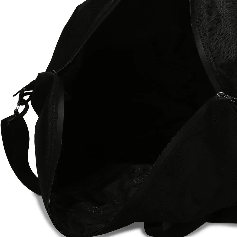 Large single compartment duffle bag is ideal for travel and storage. Made from polyester, the black duffle bag has a single main compartment with internal pockets & a shoe compartment. The bag has snap buttons on sides for compression that makes it collapsible, two carry on handles for easy lifting and an adjustable shoulder strap. The bag is finished with Woods branding on exterior.