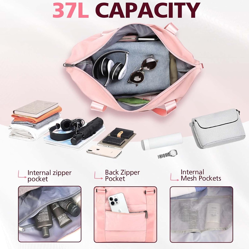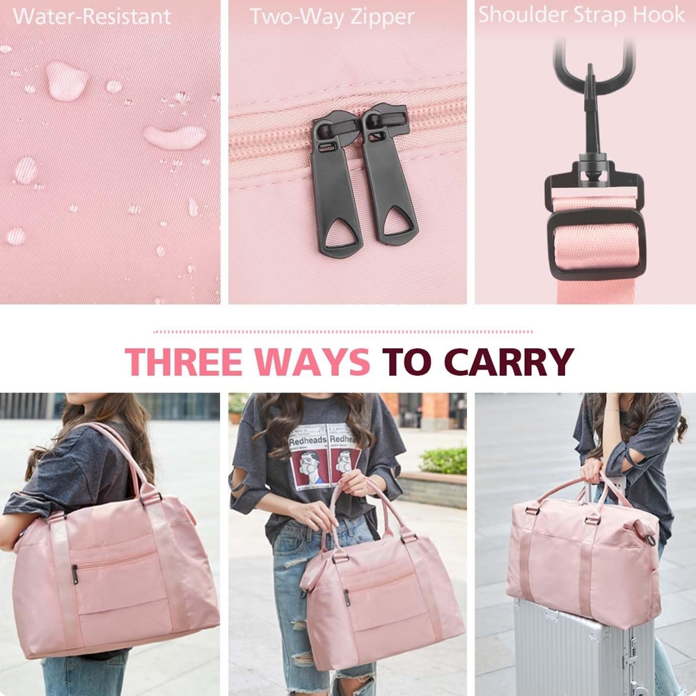 Dimensions of the large handbag are 47.2 x 36.1 x 22.15 cm / 18.5 x 14.2 x 8.5 inches, with a weight of 0.6 kg / 1.3 lbs. This weekender bags for women travel is perfect for carrying on board during air travel. Keeping your valuable items and important documents with you ensures their protection throughout the flight. You don't have to worry about your luggage getting lost, damaged, or stolen during the checked baggage process.
