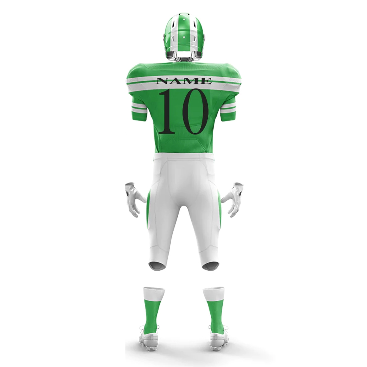 Custom American Football uniforms are made with 100% polyester stretchable 4 way lycra spandex fabric with added panels to fit the pads inside and best quality finishing is make assured. American football wear are manufactured and supplied all around the Europe clubs, Academies and sports wear shops.