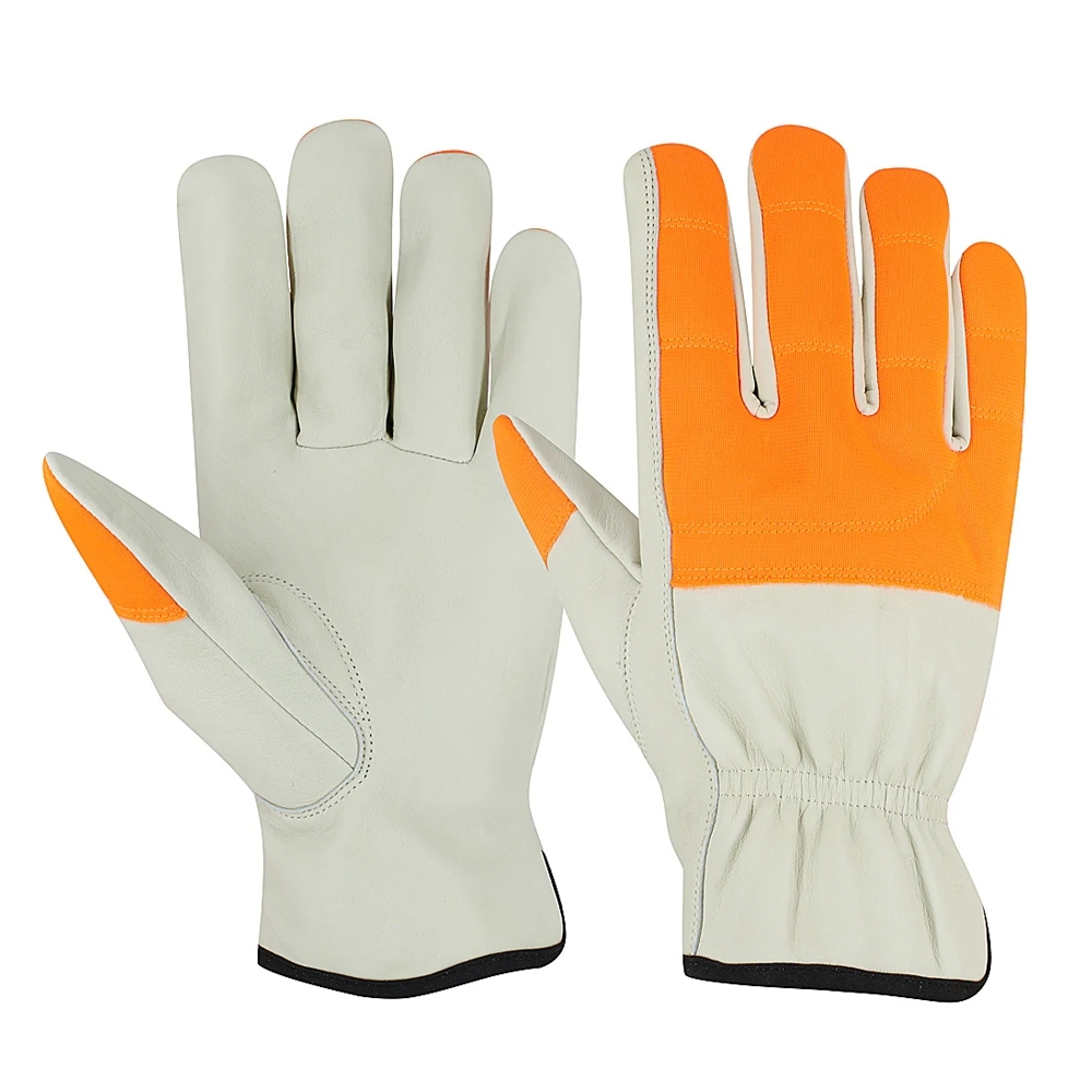 • Safety Yellow / Fluorescent Yellow: The vibrant, textured split-leather used for the back of the hand and the long safety cuffs.