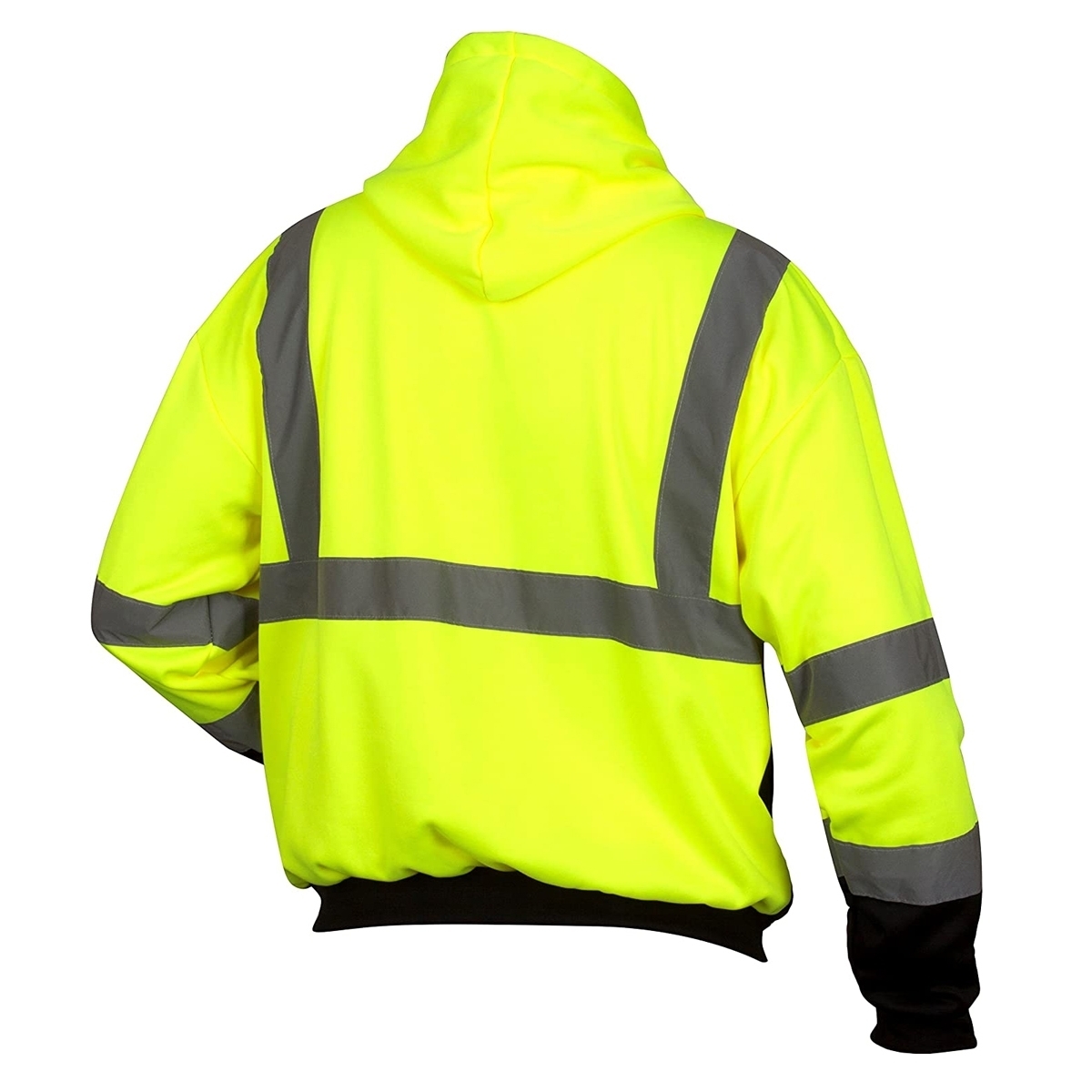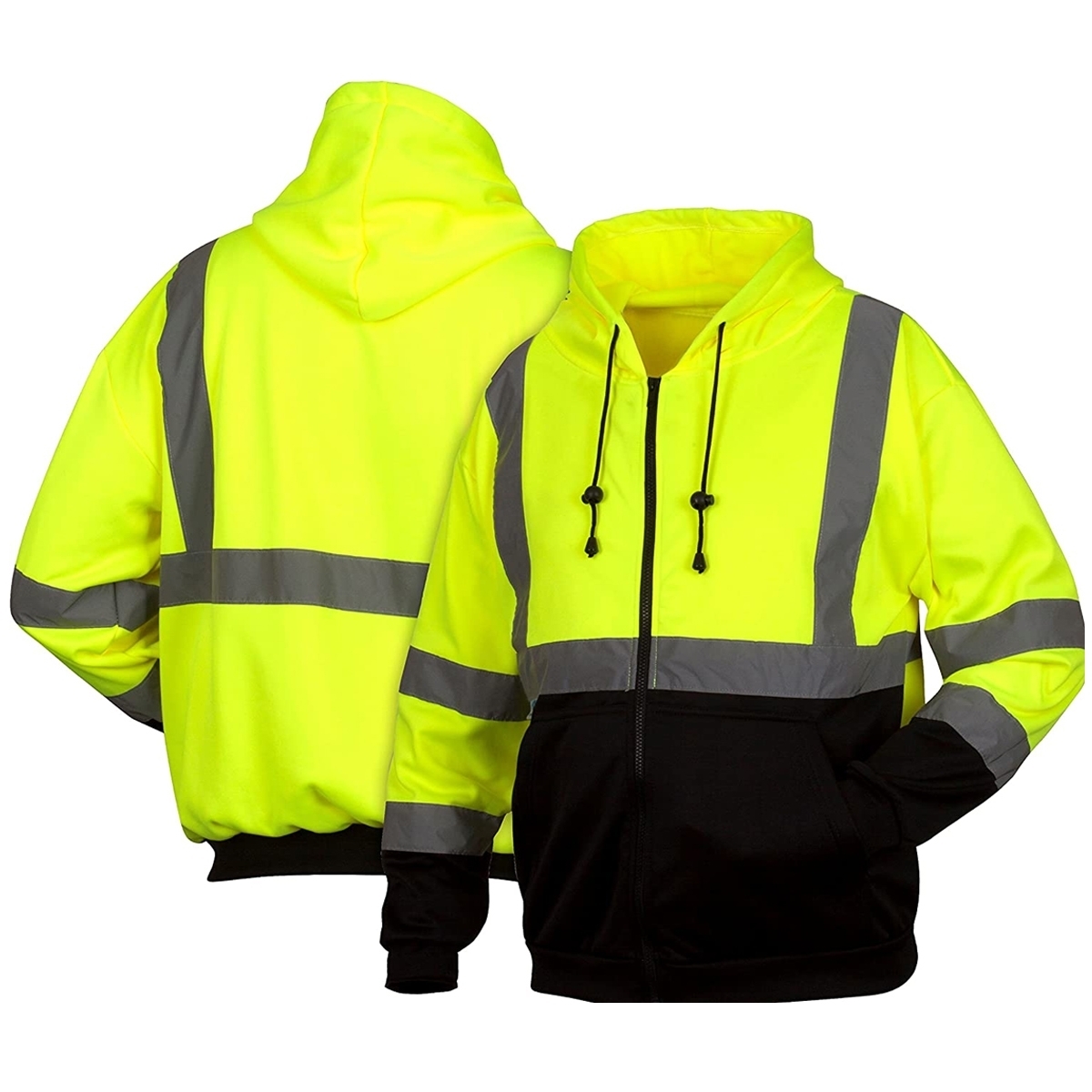 • It has two lower pockets and an adjustable drawstring work wear hood
