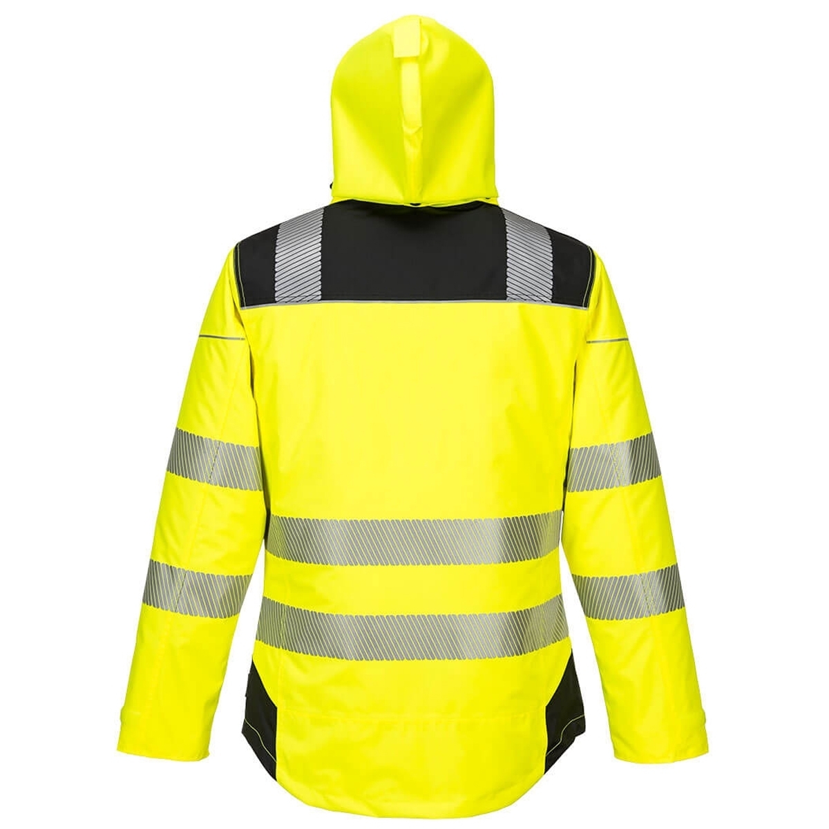 • Hi-Vis Yellow / Fluorescent Yellow: This is the dominant bright color of the jacket, designed for maximum visibility in daylight and low-light conditions.