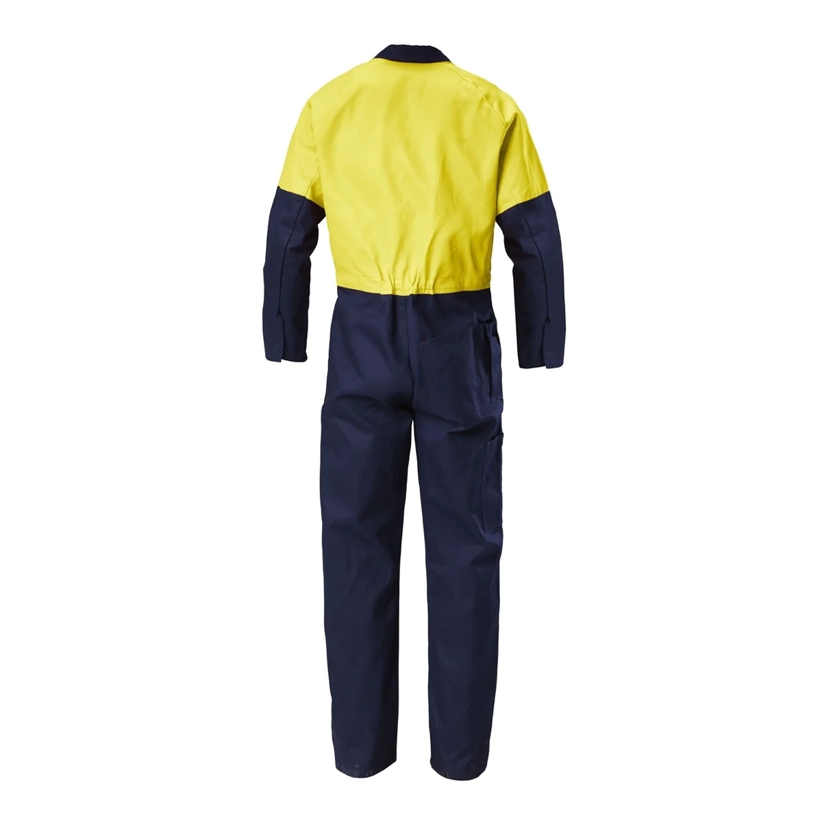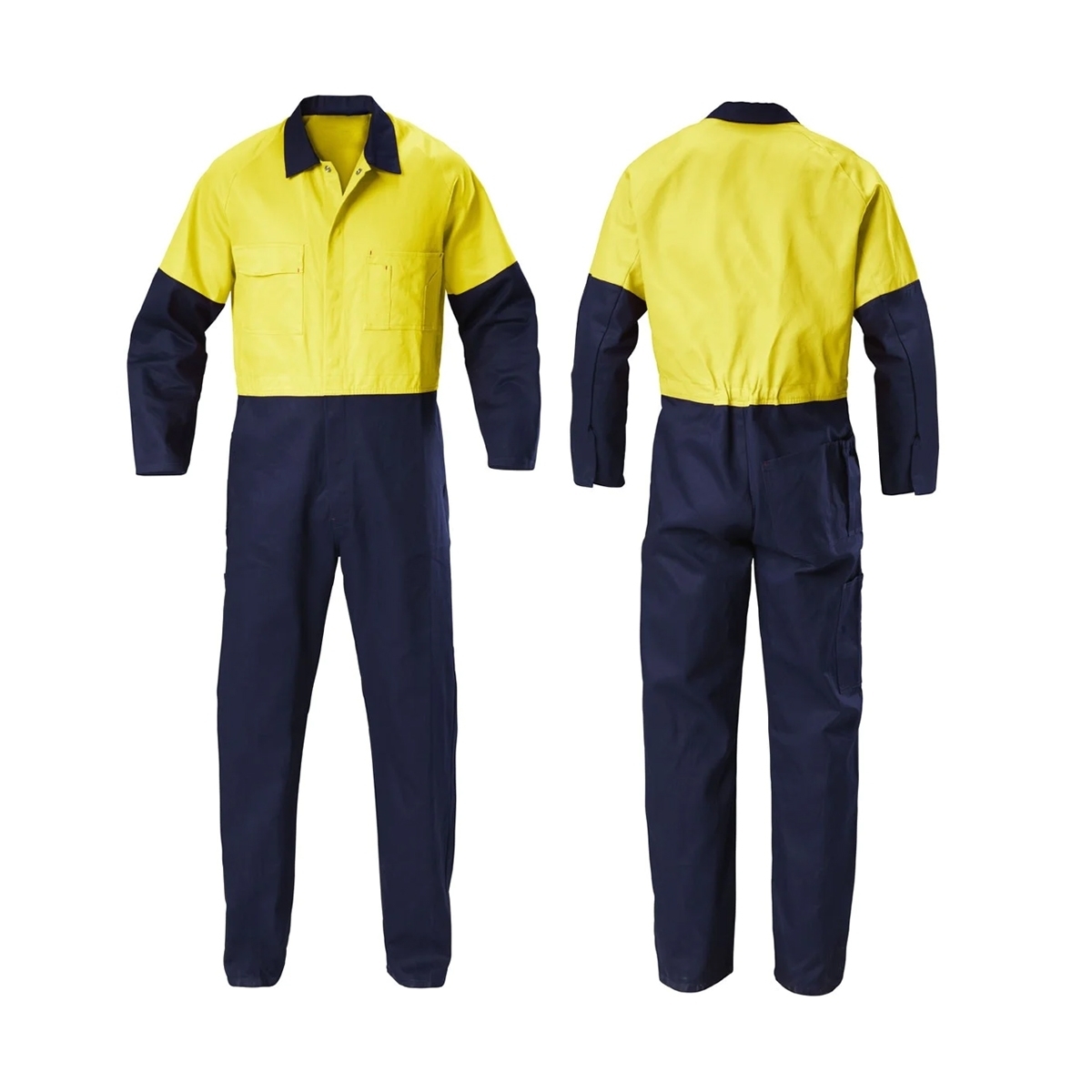 • Navy Blue: The dark, solid color used for the lower half and the ends of the sleeves. This "color-block" design is practical for high-wear areas, as the darker fabric helps hide dirt, oil, and grease.