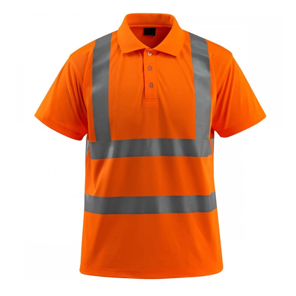 Premium. Fluorescent with vertical and horizontal reflective tapes. Ribbed collar. Neckband. Buttoned placket.